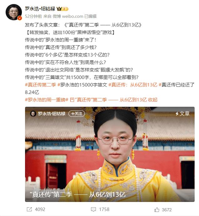 广州贷款 8月26日罗永浩则在微博帐号“罗永浩·钮祜禄”出文详细说明“真还传”内幕。罗永浩表明,到现在为止一共还清8.24亿,远远超出以前向社会公布完的“欠帐6个多亿”。